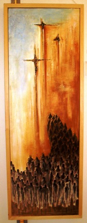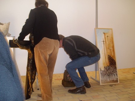 An art exhibition in the process of being assembled.